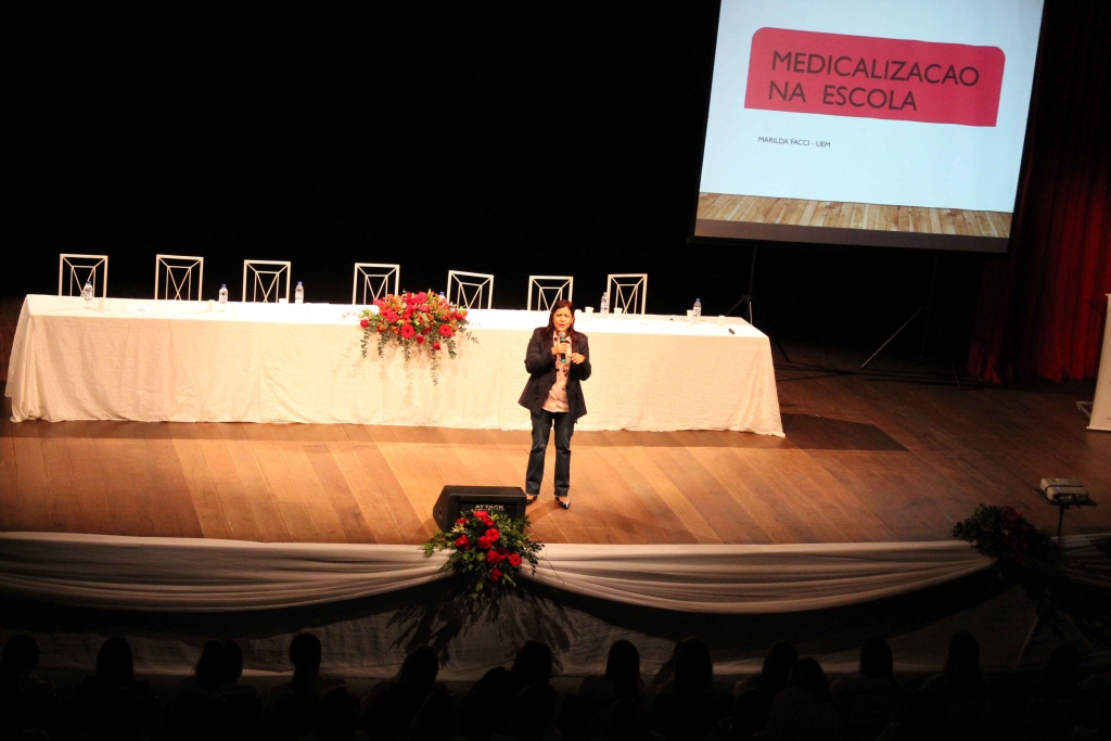 No último sábado (29), aconteceu no teatro municipal Elias Angeloni, a palestra “Vamos dizer não a medicalização na primeira infância”, com a doutora em Educação Escolar, Marilda Gonçalves Dias Facci. O evento em parceria Faculdades Esucri e Afasc, reuniu mais de 700 educadores da rede municipal de ensino e falou na importância, cuidados e riscos da medicalização sem supervisão de um médico, além de apresentar números alarmantes do uso de medicamentos controlados em crianças de 0 a 5 anos.